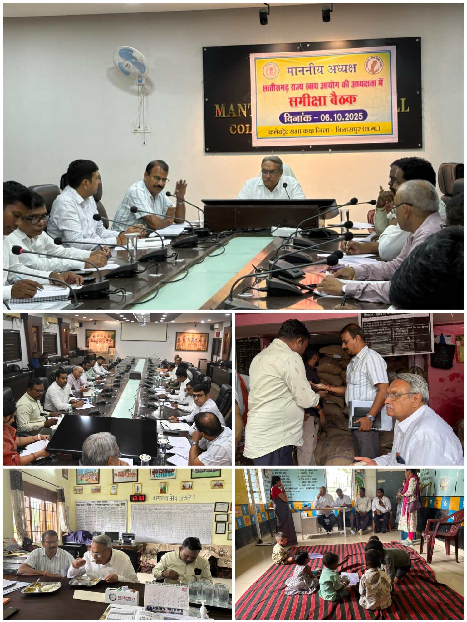 बिलासपुर // राज्य खाद्य आयोग के अध्यक्ष संदीप शर्मा एवं सदस्य ज्योति कश्यप, राजेन्द्र महिलांगे तथा सचिव राजीव जायसवाल के द्वारा बिलासपुर जिले के दौरे पर रहे। अध्यक्ष शर्मा ने भ्रमण के बाद जिला पंचायत सीईओ संदीप अग्रवाल की उपस्थिति में जिला कार्यालय के मंथन सभा कक्ष में खाद्य विभाग, स्कूल शिक्षा विभाग, आदिवासी विकास विभाग, महिला एवं बाल विकास विभाग, नागरिक आपूर्ति निगम के आयोग से सम्बंधित कार्यों की समीक्षा की गई। उन्होंने समीक्षा बैठक में राज्य खाद्य आयोग का शिकायत कॉल सेन्टर नम्बर 18002333663 एवं 1967 का उचित मूल्य दुकानों, मध्यान्ह भोजन संचालित स्कूलों, छात्रावासों, आगंनबाड़ी केन्द्रों में प्रदर्शित कराने के निर्देश दिये गये। साथ ही फोर्टिफाईड चावल के लाभ एवं उपयोग की जानकारी के व्यापाक प्रचार-प्रसार करने एवं इस बारे में प्रामाणिक जानकारी चस्पा कराने के निर्देश दिये गये।