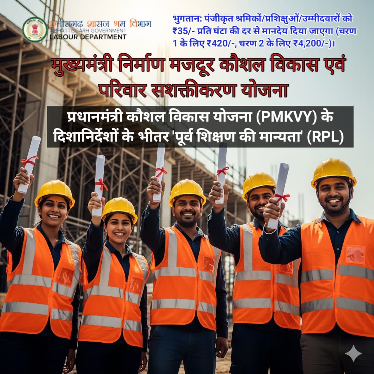 इस योजना के तहत, वर्षों के अनुभव वाले श्रमिकों को मात्र 12 घंटे के ओरिएंटेशन और मूल्यांकन के बाद भारत सरकार का आधिकारिक कौशल प्रमाण पत्र प्राप्त होगा, साथ ही ₹4,620/- तक का सीधा आर्थिक लाभ भी मिलेगा।