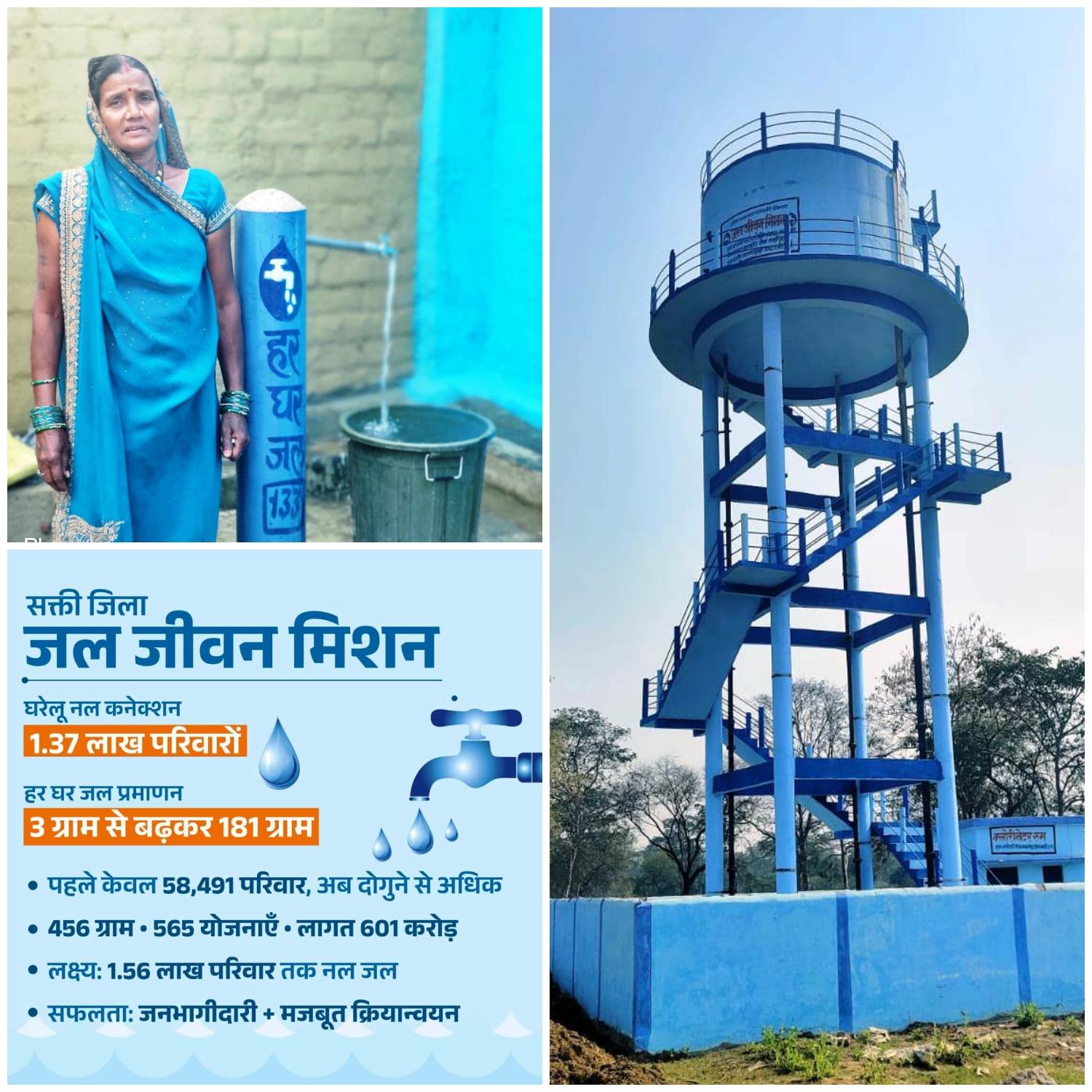 बिलासपुर :— जल जीवन मिशन के अंतर्गत नवगठित सक्ती जिले में घरों तक पेयजल पहुंचाने का काम जोरों पर चल रहा है। अब तक वहां के एक लाख 37 हजार 139 घरों में नल से जल पहुंचाया जा चुका है। मिशन के तहत जिले के 456 गांवों के लिए कुल 565 योजनाएं मंजूर की गई हैं। इनमें से अब 181 गांव हर घर जल से प्रमाणित हो गए हैं, जिनकी संख्या जिला गठन के समय मात्र तीन थी।