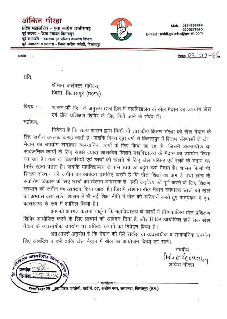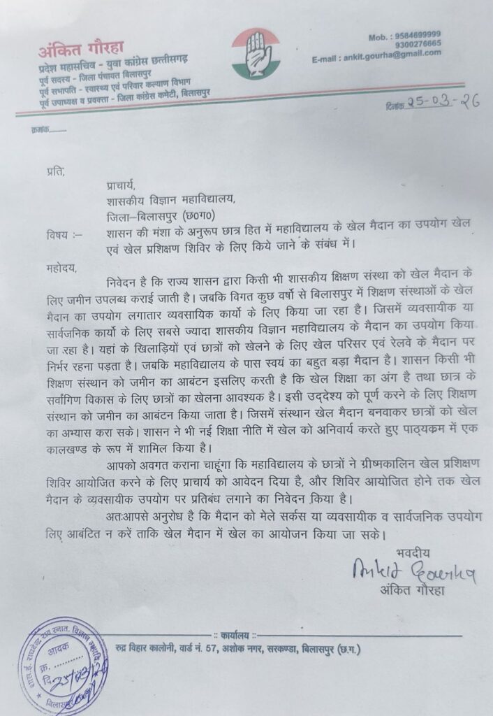 मामले ने तब और तूल पकड़ा जब कांग्रेस नेता अंकित गौरहा ने इस मुद्दे को उठाते हुए जिला कलेक्टर को ज्ञापन सौंपा। उन्होंने साफ शब्दों में कहा कि महाविद्यालय की परिसंपत्तियों पर पहला अधिकार छात्रों का है और इसमें किसी भी प्रकार की लापरवाही स्वीकार नहीं की जाएगी।