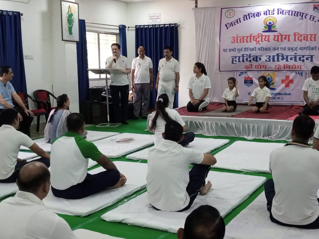 बिलासपुर / जिला न्यायाधीश एवं अध्यक्ष जिला विधिक सेवा प्राधिकरण बिलासपुर अशोक कुमार साहू के निर्देशन पर जिला एवं सत्र न्यायालय परिसर बिलासपुर में अंतर्राष्ट्रीय योग दिवस के अवसर पर योग शिविर का आयोजन किया गया। उक्त योग शिविर में अपर जिला एवं सत्र न्यायाधीश सुश्री स्मिता रत्नावत द्वारा उपस्थित न्यायिक अधिकारियों, अधिवक्ताओं एवं न्यायिक कर्मचारियों को योग तथा प्राणायाम से होने वाले लाभ के बारे में बताते हुए ताड़ासन, वृक्षासन, त्रिकोणासन, गरूणासन, मयूरासन एवं अन्य प्रकार के प्राणायाम एवं ध्यान कराया गया। उल्लेखनीय है कि अपर जिला एवं सत्र न्यायाधीश सुश्री स्मिता रत्नावत योग एवं प्राणायाम की क्रियाओं में पारंगत हैं। इस अवसर पर जिला एवं सत्र न्यायाधीश अशोक कुमार साहू द्वारा योग शिविर में उपस्थित न्यायिक अधिकारियों, कर्मचारियों एवं अधिवक्ताओं को अपने दैनिक जीवन में योग को अपनाने की अपील की गई। योग शिविर में स्थायी एवं जनोपयोगी लोक अदालत के अध्यक्ष रिजवान खान, विशेष न्यायाधीश (एट्रोसिटी) राजभान सिंह, अपर जिला एवं सत्र न्यायाधीश सुनील कुमार जायसवाल, प्रशांत कुमार शिवहरे, अशोक कुमार लाल, सुमीत कपूर, अविनाश कुमार त्रिपाठी, मुख्य न्यायिक मजिस्ट्रेट मनीष कुमार दुबे सहित जिला न्यायालय में पदस्थ समस्त न्यायिक अधिकारी-कर्मचारीगण एवं अधिवक्ता उपस्थित थे। उक्त योग शिविर का आयोजन जिला एवं सत्र न्यायालय बिलासपुर तथा जिला विधिक सेवा प्राधिकरण द्वारा सयुक्त रूप से किया गया था।