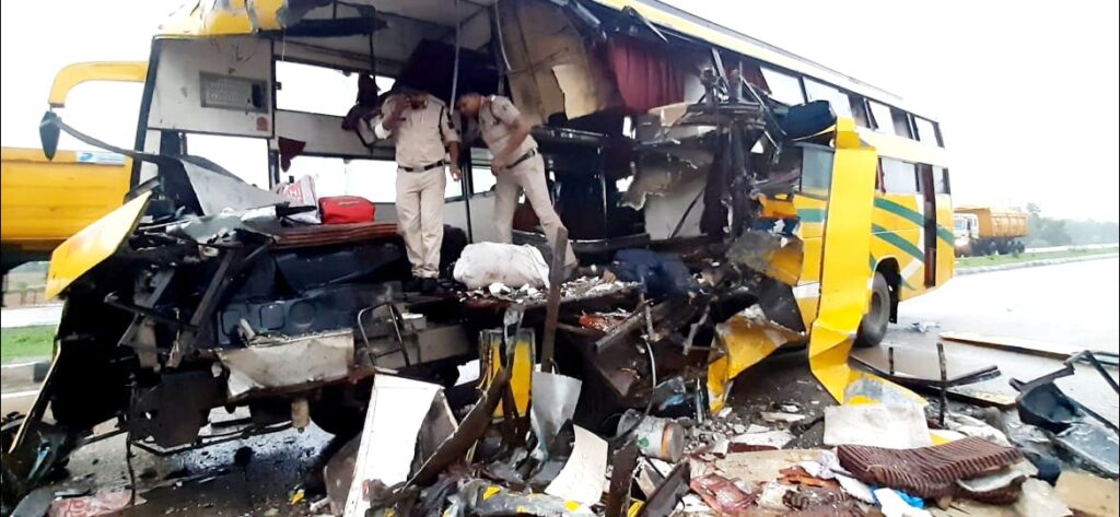 खड़ी ट्रेलर ट्रक में पीछे से घुसी तेज रफ्तार बस