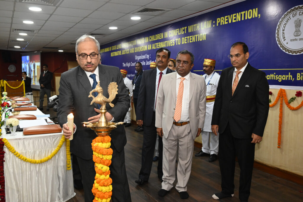 कार्यशाला का स्वागत उद्बोधन छत्तीसगढ़ उच्च न्यायालय के किशोर न्याय सेल के अध्यक्ष माननीय श्री न्यायमूर्ति अरविंद सिंह चंदेल द्वारा कहा गया कि बच्चे विभिन्न कारणों विधि का उल्लंघन करने में आ सकते हैं। साक्ष्य दर्शाता है कि इनमें से अधिकांश बच्चे वंचित पृष्ठभूमि से आते हैं तथा ये ऐसे बच्चे भी हैं जिन्हें देखभाल एवं सुरक्षा की आवश्यकता है। यह, अंतरराष्ट्रीय और राष्ट्रीय विधिक ढांचे द्वारा बच्चों को दी जाने वाली विशेष सुरक्षा के साथ, रोकथाम, पुनर्वास तथा पुनर्स्थापनात्मक न्याय प्रथाओं पर ध्यान केंद्रित करने तथा किशोर न्याय अधिनियम के न्याय एवं सुरक्षा प्रावधानों के मध्य संबंध सुनिश्चित करने का आग्रह करता है। पिछले दशक में समाज में तेजी से आए परिवर्तनो को देखते हुए भारत में बच्चों को दोतरफा सुरक्षा की आवश्यकता है। एक ओर जहां उन्हें बच्चे के उचित पालन-पोषण के लिए पारिवारिक माहौल प्रदान करके उन्हें शारीरिक रूप से बलवान, मानसिक रूप से सतर्क, शैक्षणिक रूप से प्रतिभाशाली बनाने हेतु उनके समग्र विकास के लिए बुनियादी आवश्यकताएं प्रदान की जानी चाहिए। दूसरे पक्ष को उस बच्चे की रोकथाम और उपचार की आवश्यकता है जिसे अपराधी कहा जाता है। कार्यवाही को दो मोर्चों पर क्रियन्वित करने की आवश्यक है।