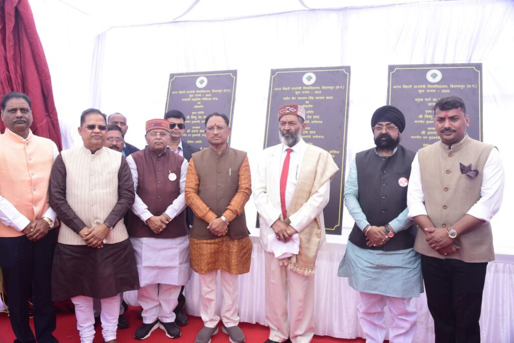 बिलासपुर -//- मुख्यमंत्री श्री विष्णुदेव साय ने यहां अटल बिहारी वाजपेयी विश्वविद्यालय द्वारा आयोजित छठवें कुल उत्सव समारोह में शामिल हुए। उन्होंने विश्वविद्यालय परिसर में स्थापित पूर्व प्रधानमंत्री भारत रत्न स्व. श्री अटल बिहारी वाजपेयी की प्रतिमा पर माल्यार्पण कर उन्हें सादर नमन किया। छत्तीसगढ़ के स्वतंत्रता संग्राम सेनानियों की याद में बनाए गए शहीद स्मारक पर पुष्पाजंलि अर्पित कर उन्हें भी नमन किया। मुख्यमंत्री श्री साय ने इस अवसर पर कहा कि आज बहुत विशेष दिन है, आज पूरे प्रदेश में कार्यक्रम हो रहे हैं, सुशासन दिवस उत्साहपूर्वक मनाया जा रहा है। उन्होंने श्रद्धेय श्री अटल बिहारी वाजपेयी जी की जयंती पर प्रदेशवासियों को बधाई और शुभकामनाएं दी। उन्होंने कहा कि शिक्षा के विकास से ही सुशासन आएगा। जितनी साक्षरता और शैक्षणिकता बढ़ेगी उतना ही सुशासन आएगा। मुख्यमंत्री श्री साय ने विश्वविद्यालय स्तर पर आयोजित छत्तीसगढ़ी खेलकूद एवं संस्कृति पर आधारित विभिन्न प्रतियोगिताओं के विजेता प्रतिभागियों को पुरस्कार एवं प्रमाण पत्र देकर सम्मानित किया। इस अवसर पर विश्वविद्यालय की त्रैमासिक पत्रिका ‘कन्हार’ के नये अंक सहित विभिन्न प्रकाशनों का विमोचन भी किया। कार्यक्रम में बिलासपुर विधायक श्री अमर अग्रवाल, बिल्हा विधायक श्री धरमलाल कौशिक, बेलतरा विधायक श्री सुशांत शुक्ला, तखतपुर विधायक श्री धरमजीत सिंह, एवं कुलपति आचार्य अरूण दीवाकर नाथ वाजपेयी विशेष अतिथि के रूप में उपस्थित थे।