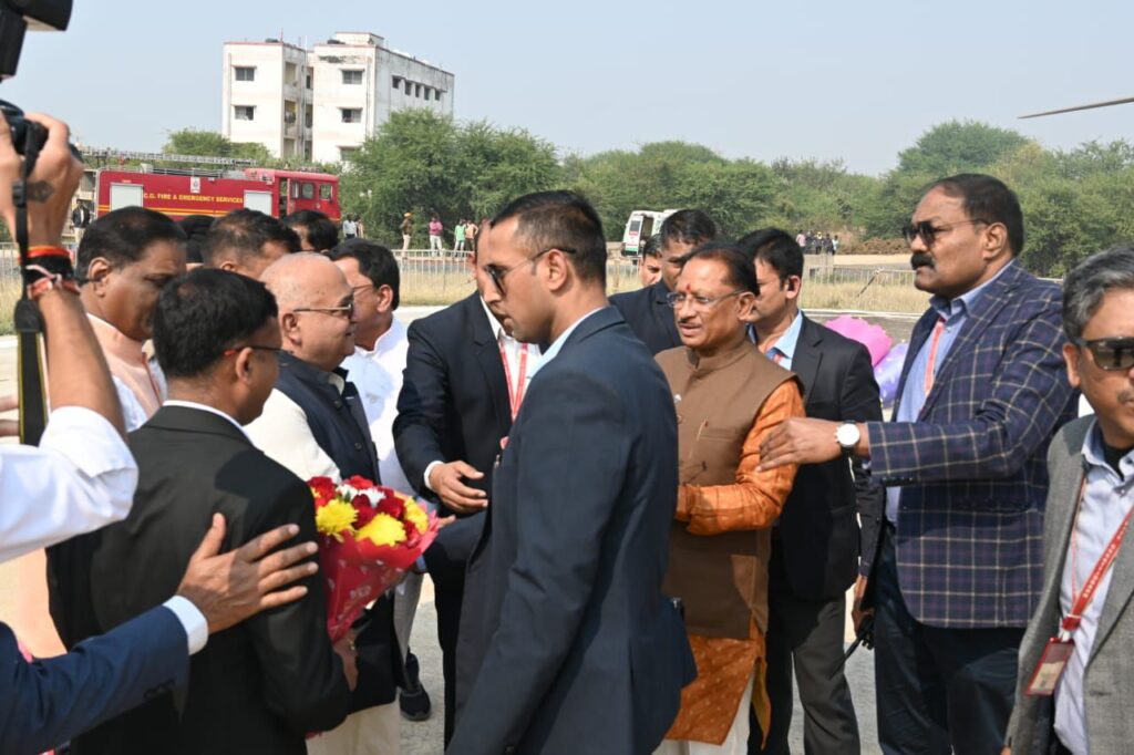 मुख्यमंत्री श्री विष्णुदेव साय का हेलीपेड पर आत्मीय स्वागत – मुख्यमंत्री श्री विष्णुदेव साय के बिलासपुर पहुंचने पर हेलीपेड पर उनका आत्मीय स्वागत किया गया। पंडित सुंदर लाल शर्मा विश्वविद्यालय हेलीपेड पर प्रमुख रूप से कुलपति आचार्य अरूण दीवाकर नाथ वाजपेयी, बिलासपुर विधायक श्री अमर अग्रवाल, बिल्हा विधायक श्री धरमलाल कौशिक, बेलतरा विधायक श्री सुशांत शुक्ला, तखतपुर विधायक श्री धरमजीत सिंह, संभागायुक्त श्री केडी कुंजाम, आईजी श्री अजय यादव, कलेक्टर श्री अवनीश शरण, एसपी श्री संतोष सिंह, श्री रामदेव कुमावत सहित बड़ी संख्या में जनप्रतिनिधि एवं नागरिकों ने गुलदस्ता भेंटकर मुख्यमंत्री का स्वागत किया।