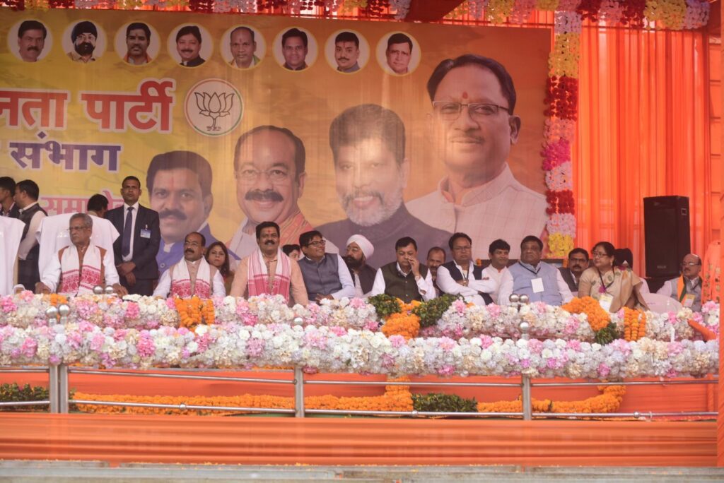 बिलासपुर // भाजपा का संभाग स्तरीय कार्यकर्ता अभिनंदन समारोह पुलिस परेड मैदान बिलासपुर में संपन्न हुआ । समारोह में मुख्यमंत्री विष्णु देव साय,प्रदेश प्रभारी ओम माथुर,भाजपा के प्रदेश अध्यक्ष किरण देव, उपमुख्यमंत्री अरुण साव, विजय शर्मा सहित भाजपा के वरिष्ठ पदाधिकारी उपस्थित थे। सबने भाजपा के सभी जिलों के जिला अध्यक्ष,मंडल अध्यक्ष सहित कार्यकर्ताओं का पुष्प वर्षा से अभिनंदन किया ।इस अवसर पर बिल्हा विधानसभा क्षेत्र के पथरिया मंडल के अंतर्गत विभिन्न ग्रामों के जोगी कांग्रेस व कांग्रेस के लगभग दो दर्जन कार्यकर्ताओं ने भाजपा में प्रवेश किया ।
