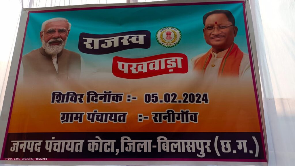 बिलासपुर :- राजस्व पखवाड़े के तहत 1 से 15 फरवरी तक शिविर का आयोजन किया जा रहा है। 5 फरवरी को कोटा ब्लाक के ग्राम रानीगांव में शिविर का आयोजन किया गया जिसमें बड़ी संख्या में विभिन्न दस्तावेजों से संबंधित अपने काम पूरा कराने लोग पहुंचे। शिविरों में बी 1, पठन, अविवादित नामांकन, अविवादित बटवारा, अभिलेख अपडेट, सीमांकन, डायवर्सन जैसे काम कराए जा रहे है।