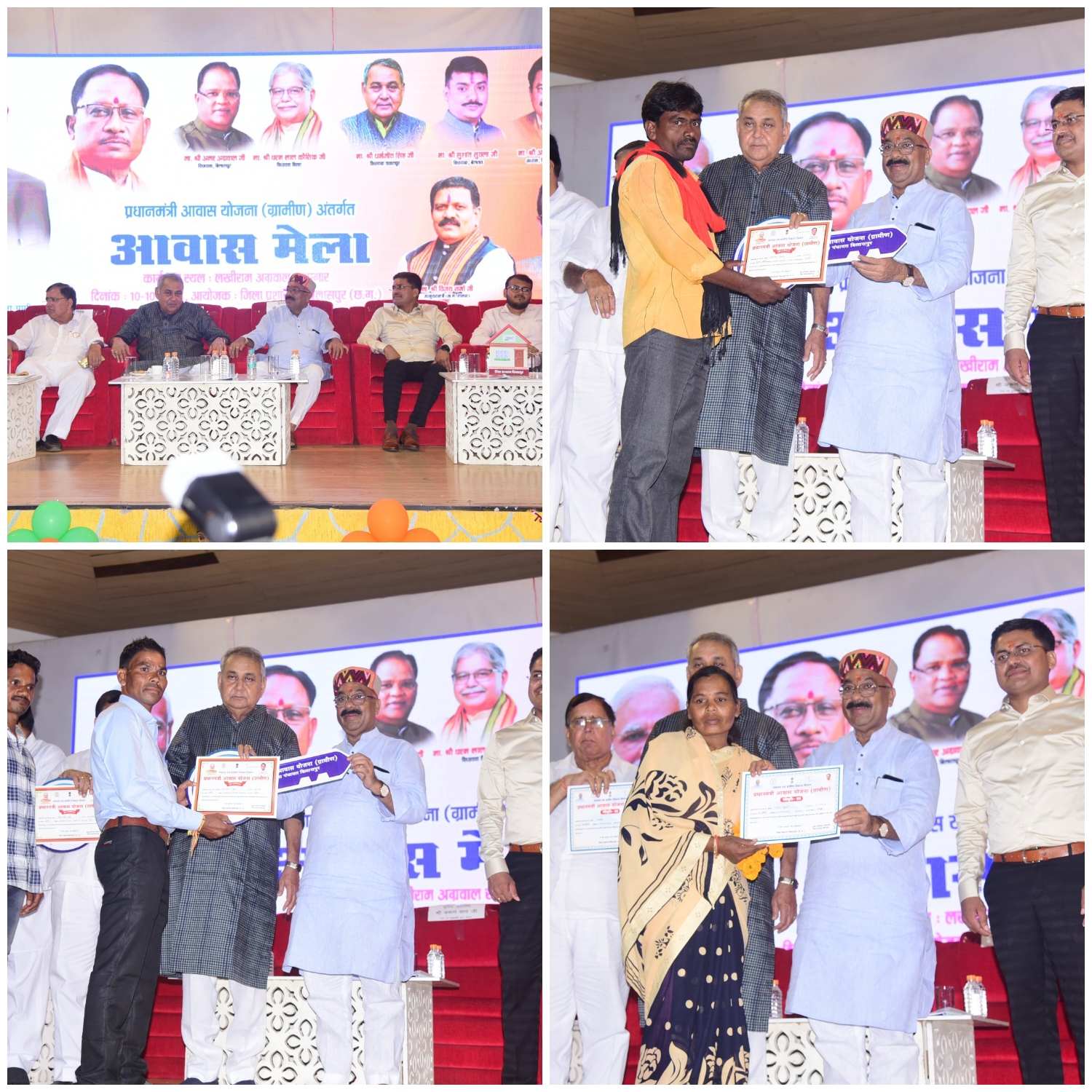 कार्यक्रम को संबोधित करते हुए विधायक धर्मजीत सिंह ने कहा कि 10 साल पहले प्रधानमंत्री नरेन्द्र मोदी प्रधानमंत्री बने और उन्होंने लोगों के सपनों को पूरा करने की दिशा में काम किया। अपना घर अपना होता है और जब किसी को पक्का घर मिलता है तो उसकी जिंदगी का एक मकसद पूरा होता है और पूरे देश में लोगों का यह मकसद पूरा करने का काम प्रधानमंत्री नरेन्द्र मोदी कर रहे हैं। उन्होंने 18 लाख आवास देने की गारंटी दी और यह मोदी की गारंटी थी जो पूरी हुई। कार्यक्रम की शुरूआत में कलेक्टर अवनीश शरण ने स्वागत भाषण दिया। सीईओ ने विस्तृत प्रतिवेदन प्रस्तुत किया। उन्होंने बताया कि वर्ष 2024-25 में जिले में 2024-25 में 50 हजार 619 आवास स्वीकृति का लक्ष्य है जिसमें से 36 हजार 643 आवास स्वीकृत किये गये हैं। 33 हजार 19 स्वीकृत आवासों के लिए प्रथम किस्त की राशि जारी की जा चुकी है। पूर्व में स्वीकृत आवासों में 93 प्रतिशत लक्ष्य हासिल कर लिया गया है।