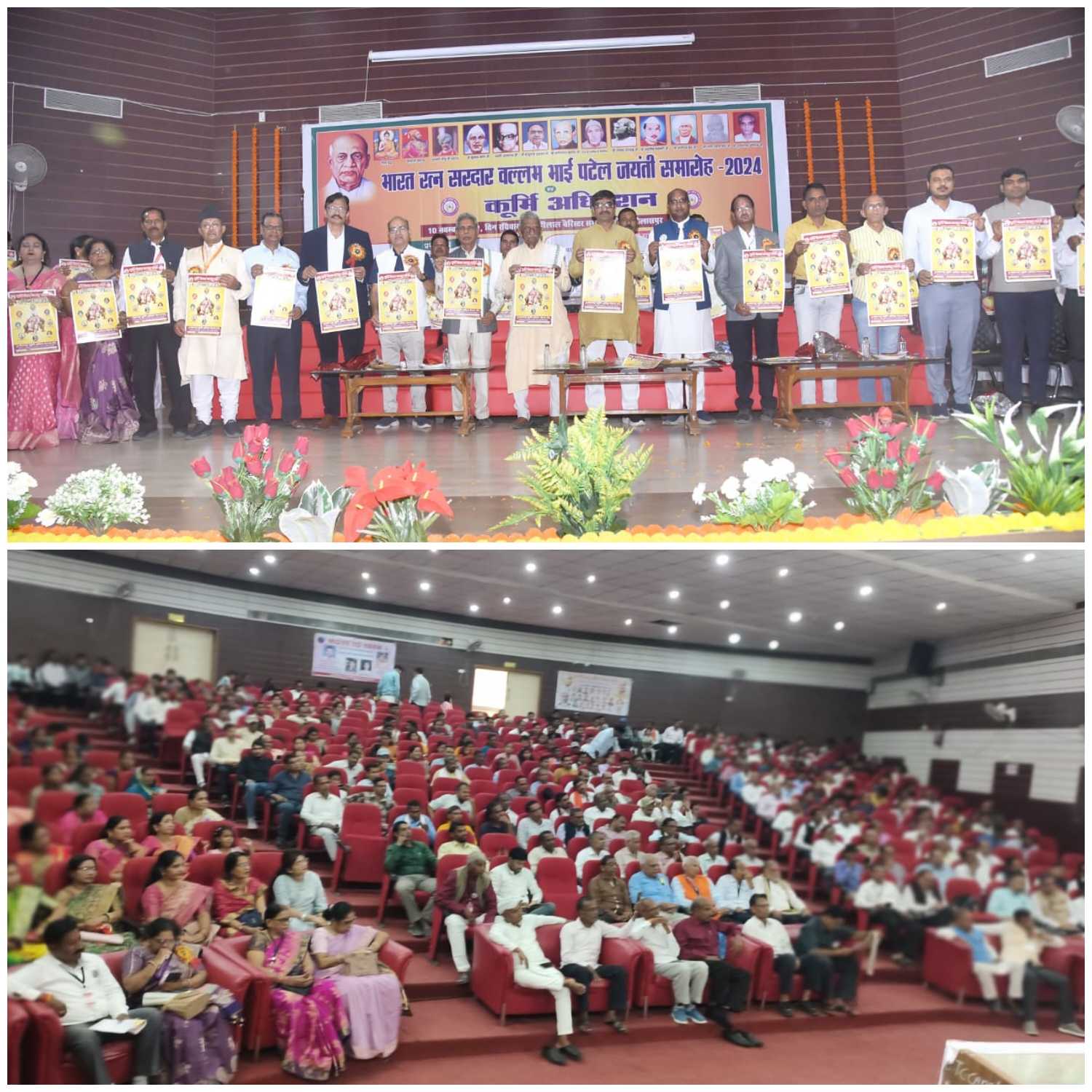 बिलासपुर :- भारत रत्न लौह पुरुष सरदार वल्लभ भाई पटेल जी की 150 वीं जयंती के उपलक्ष्य में छत्तीसगढ़ कूर्मि क्षत्रिय चेतना मंच द्वारा पखवाड़ा समापन समारोह में सामाज के विशिष्ट प्रतिभाओं का मंच में गरिमापूर्ण सम्मान किया गया। इसमें हाईस्कूल /हायर सेकंडरी के टापर 30 विद्यार्थियों को प्रतिभावान विद्यार्थी पुरस्कार, नेट सेट गेट पीएससी चयनित को विशिष्ट प्रतिभा सम्मान, कृषि के क्षेत्र में शिवकुमार चंद्रवंशी कबीर धाम को कूर्मि कृषि रत्न सम्मान, हीरालाल कश्यप जांजगीर को कूर्मि कृषि भूषण सम्मान, श्रीमती दिव्या जदुनंदन वर्मा (महिला कृषक) को कूर्मि कृषि श्री सम्मान से सम्मानित किया गया। मुख्य अतिथि व्यास कश्यप विधायक ने सरदार पटेल जी के राष्ट्रीय एकीकरण को याद किया। उन्होंने सम्मानित प्रतिभागियों को बधाई देते हुए कूर्मि चेतना मंच द्वारा कूर्मियो की दिशा दशा व भविष्य निर्धारण हेतु चेतना जागृत करने वाले विभिन्न गतिविधियां, साहित्य प्रकाशन, नेतृत्व क्षमता विकास जैसे प्रशिक्षण कार्यक्रम की सराहना की । बैरिस्टर ठा छेदीलाल कृषि महाविद्यालय आडिटोरियम में आयोजित भव्य समारोह स्थल पर दिव्या कौशिक द्वारा सरदार पटेल जी की रंगोली चित्र कला ने सभी को आकर्षित किया। छत्तीसगढ़ कूर्मि क्षत्रिय चेतना मंच का यह 31 वां वार्षिक अधिवेशन था जिसकी अध्यक्षता ईंजी लक्ष्मी कुमार गहवई,प्रदेशाध्यक्ष ने की । समाज विकास के लिए युवा पीढी को आगे आने उन्होंने आव्हान किया। अतिथियों ने *कूर्मि चेतना पंचांग 20225* का विमोचन किया एवं पंचांग के राष्ट्रीय संयोजक बी आर कौशिक ने पंचांग के पीछे प्रकाशित लेख को कैरियर विकास के लिए बहुउपयोगी बताया।प्रदेश स्तरीय वृहद आयोजन की अध्यक्षता बैजनाथ चंद्राकर पूर्व अध्यक्ष अपेक्स बैंक ने की । विशिष्ट अतिथि ललित बघेल, राष्ट्रीय संगठन मंत्री अखिल भारतीय कुर्मी महासभा, श्रीमती तारा चंद्राकर प्रदेश कूर्मि समाज रायपुर महिला अध्यक्ष , मोरध्वज चंद्राकर महामंत्री प्रदेश कूर्मि क्षत्रिय समाज,रायपुर ,डॉ एल सी मढरिया सुप्रसिद्ध नेत्र रोग विशेषज्ञ एवं समाज सेवी ,प्रमोद नायक पूर्व जिलाध्यक्ष सहकारी बैंक बिलासपुर , गिरीश पटेल ,रमेश पटेल सरगुजा, रविन्द्र पटेल ललित बघेल डॉ जीतेन्द्र सिंगरौल रायपुर , रविन्द्र पटेल मनेंद्रगढ़, चिरमिरी, प्रेमलाल पटेल पेंड्रा मरवाही, श्रीमती भारती कश्यप प्रदेशाध्यक्ष महिला प्रकोष्ठ, नंदिनी पाटनवार, रंजना वर्मा,शकुंतला पाटनवार सहित समाज के विभिन्न फिरका प्रमुख मंचासीन हुए। कार्यक्रम के संयोजक देव चंद्राकर जिलाध्यक्ष ग्रामीण, द्वारा प्रथम सत्र का स्वागत भाषण व अनिल वर्मा जिला युवाध्यक्ष द्वारा द्वितीय सत्र स्वागत भाषण दिया गया। प्रदेश मह