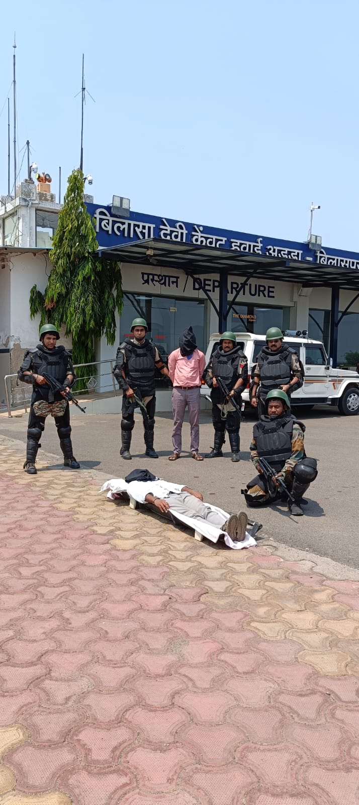 बिलासपुर // बिलासा देवी केवट एयरपोर्ट पर सफलतापूर्वक एंटी हाईजैक मॉक ड्रिल एक्सरसाइज का आयोजन किया गया। यह ड्रिल ब्यूरो ऑफ सिविल एविएशन के गाइडलाइंस के अनुसार साल में एक बार किया जाता है। एयरक्राफ्ट हाईजैक की सूचना मिलते ही एयर ट्रैफिक कंट्रोलर के द्वारा तत्काल एयरोड्रोम कमिटी चेयरमैन जिला दंडाधिकारी श्री संजय अग्रवाल एवं वरिष्ठ पुलिस अधीक्षक रजनेश सिंह को फोन पर सूचित किया गया। इसके पश्चात एयरोड्रोम कमिटी के सारे अधिकारी एयरपोर्ट के नोडल अधिकारी, एयरपोर्ट के डायरेक्टर, सीएसओ, कासो, एयरलाइंस स्टेशन मैनेजर, भाषा विज्ञानी एवं स्थानीय थाने के अधिकारी एंटी हाईजैक रूम एकत्रित हुए। एयरक्राफ्ट के अन्दर कुल 70 यात्री सवार थे। हाईजैकर से उनकी मांगों का समझौता अधिकारियों के द्वारा किया गया इसी बीच एयरपोर्ट की क्यूआरटी टीम के द्वारा 02 हाईजेकर में से 01 हाईजेकर ढेर कर दिया गया एवं बचे हुए 01 हाईजेकर को दबोच लिया गया। इस पूरी ड्रिल को जिला दंडाधिकारी महोदय के मिनिट टू मिनिट निगरानी में संपन्न किया गया। इस ड्रील में एयरपोर्ट पर वास्तविक रूप से आतंकवादियो के द्वारा विमान की अपहरण की घटना की स्थिति से निपटने एवम यात्रियों को सुरक्षित कैसे निकाला जाता है उसका उसका अभ्यास किया जाता है।